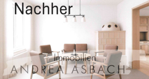Die Fotoanimation zeigt, wie die Wohnfläche dem heutigen Wohntrend stilvoll angepasst werden kann (vorher/nachher)!
