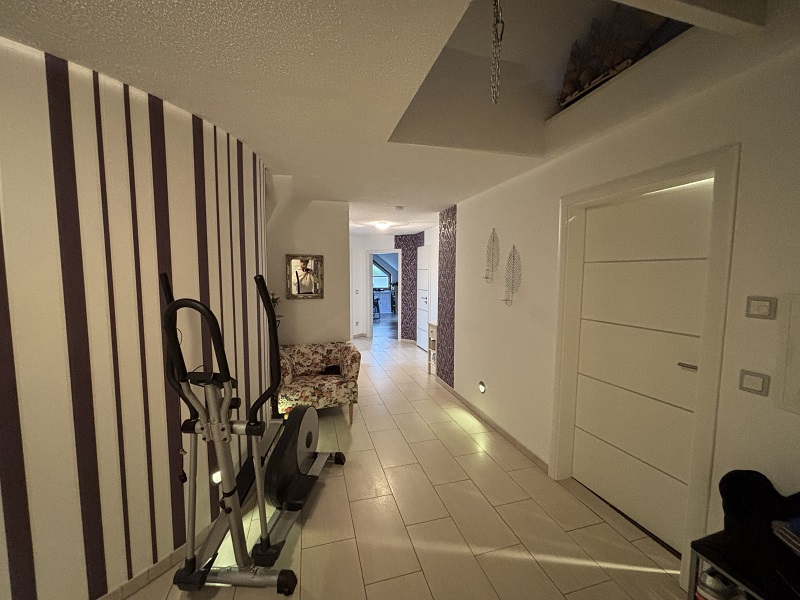 Die Wohnung im Sockelgeschoss ist barrierefrei konzipiert und bietet direkten Zugang zur Doppelgarage und zum Hauswirtschaftsraum.